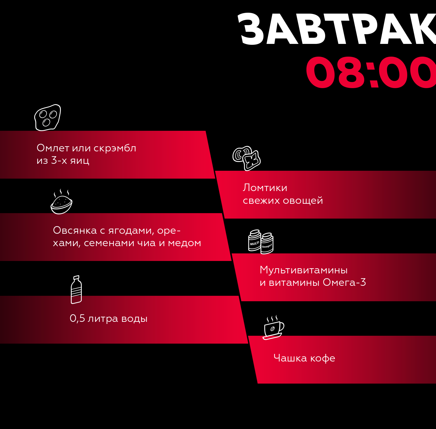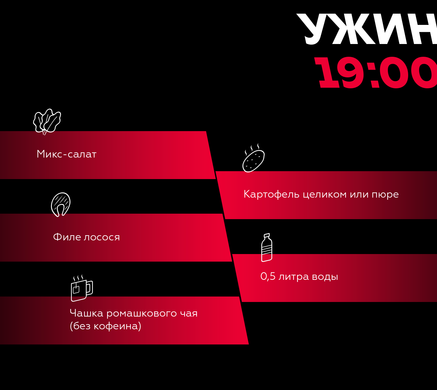 Давайте взглянем на рацион Даниила на примере первого дня уикэнда – пятницы: