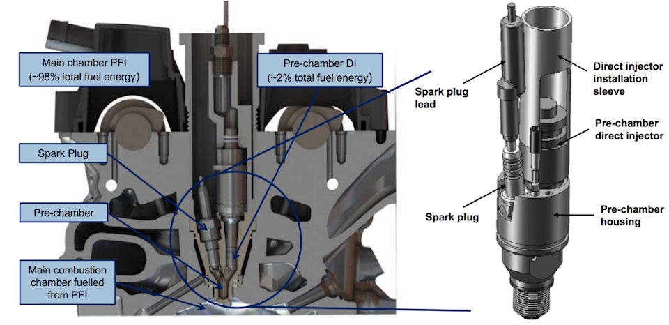 Пример системы Turbulent Jet Ignition для гражданских автомобилей от Mahle Powertrain.