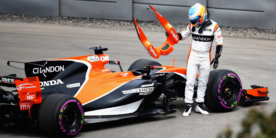 Гран При Канады ’17. Один из многочисленных сходов Фернандо Алонсо в McLaren-Honda. Испанец пришел в команду за победами и третьим титулом, а в итоге стал главным героем многочисленных мемов и источником цитат для юмористических сборников.