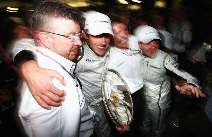 Главная спортивная сказка «Формулы-1» последнего десятилетия. Японская корпорация оказалась под ударом мирового финансового кризиса, не видела дальнейших перспектив в гонках, несмотря на увещевания главы команды Росса Брауна, и ушла из спорта, продав коллектив своему функционеру всего за доллар. Тот договорился о поставке двигателей «Мерседес», нашел способ интегрировать его в шасси, назвал команду своим именем и выиграл шесть стартовых гонок из семи силами Дженсона Баттона. Знаменитый двойной диффузор помог завоевать Кубок конструкторов и личный титул, а немецкий концерн, впечатленный перфомансом, выкупил команду и вернул в «Формулу-1» Михаэля Шумахера.