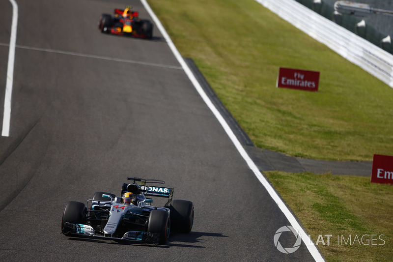 На последних кругах Ферстаппен пытается догнать лидирующего Хэмилтона