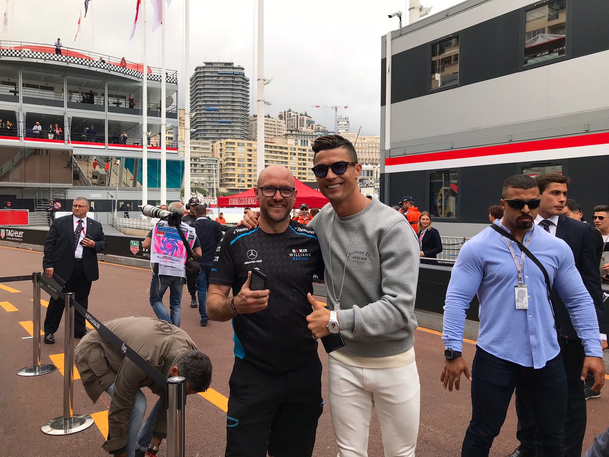 Роналду не стал ограничиваться «Мерседесом» и его главной звездой: без проблем сфоткался и с главным механиком «Уильямса» Питом Симмонсом.