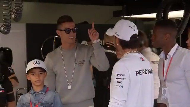 Этап 2019 года не стал исключением: по ходу тренировок в боксах «Мерседеса» заметили лидера «Ювентуса» Криштиану Роналду с девушкой Джорджиной Родригес и сыном Криштиану-младшим. Также с ними приехал близкий друг португальца – футболист «Витории Сетубал» Жозе Семеду. Сын Криша наверняка остался в полном восторге: ему удалось посидеть за рулем W10 Хэмилтона, причем туда его посадил сам Льюис.