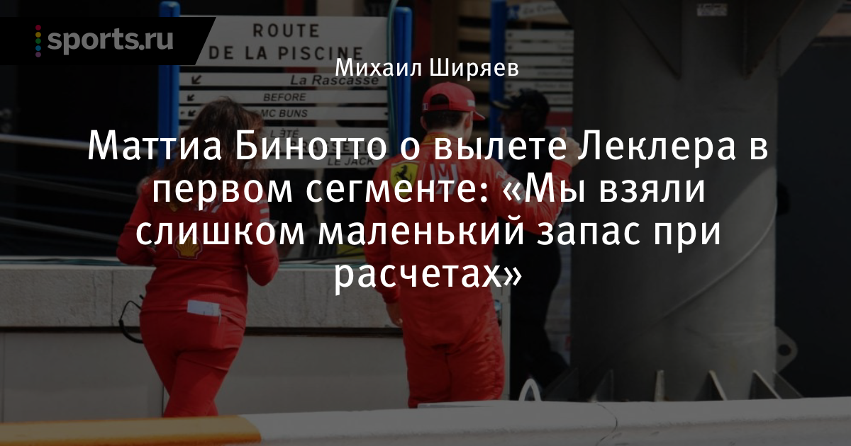 Руководитель «Феррари» Маттиа Бинотто объяснил причины неудачи Шарля Леклера в квалификации к Гран-при Монако. Монегаск не вышел на вторую попытку в первом сегменте и был выбит своим напарником Себастьяном Феттелем, который прошел во второй сегмент в заключительные секунды первой части квалификации.