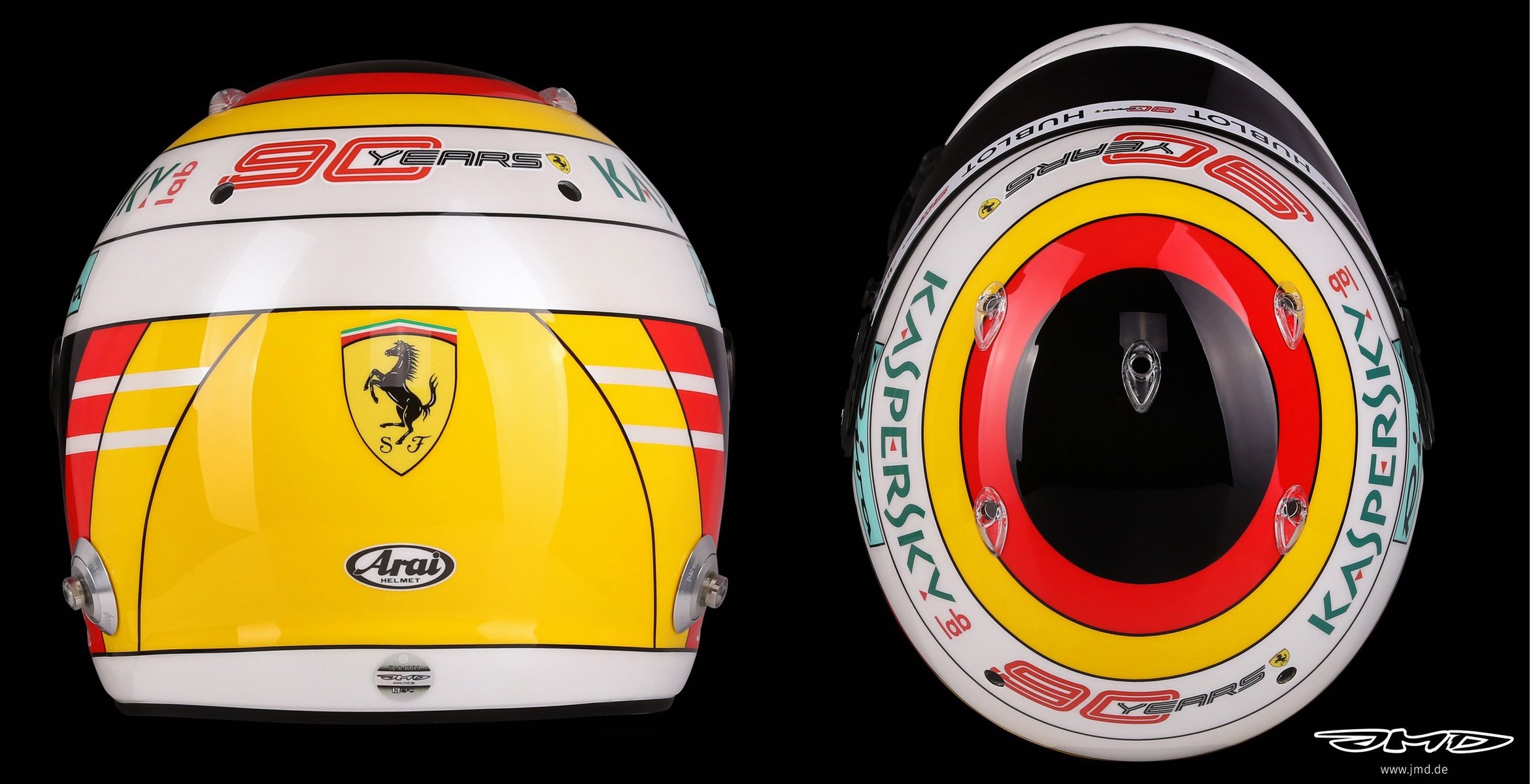 Себастьян Феттель к домашнему Гран-при Германии подготовил новую версию раскраски шлема, вдохновившись цветовой схемой пятикратного чемпиона DTM Бернда Шнайдера. Шлем Феттеля остался белым, но теперь его задняя часть раскрашена в цвета немецкого флага, а также изменилось расположение желтой, красной и черной полос на макушке. Дизайн разработала компания Jens Munser Designs.