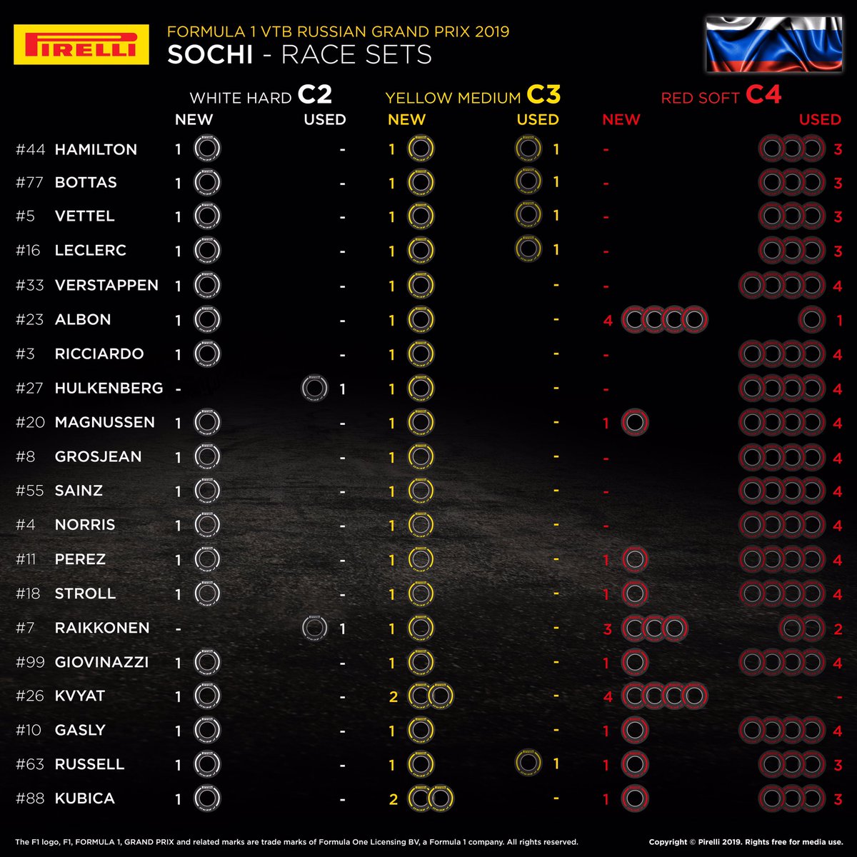 Перед стартом гонки пилоты имеют в своем распоряжении следующие комплекты резины:
