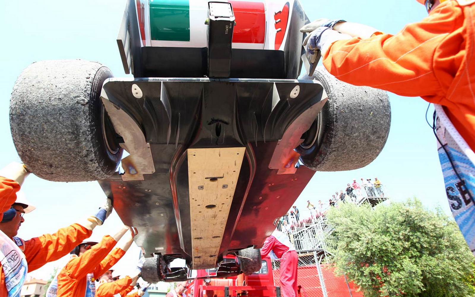 К "минусам" же можно отнести всё те же проблемы, которые были актуальны и во время гениального британского конструктора в конце 70х - любое изменение положения днища болида относительно трассы будет существенно влиять на уровень прижимной силы. К примеру, атака поребриков в поворотах станет весьма опасным занятием, поскольку резкое увеличение клиренса с одной стороны вызовет не менее резкое снижение прижимной силы, что, как и во времена Чепмена, сможет привести к потере контроля над управлением болида.