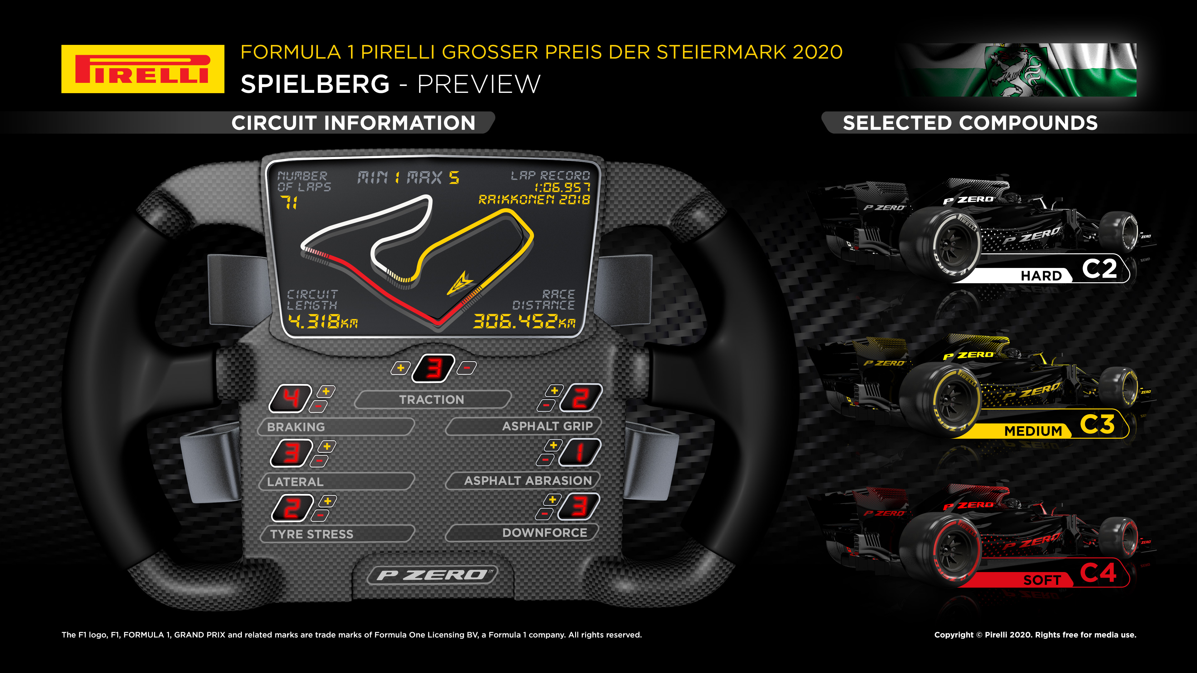 Как уже говорилось, в Австрию итальянские шинники привезли составы С2, С3 и С4. На прошлой неделе из-за нескольких выездов автомобиля безопасности некоторые пилоты проехали гонку с двумя пит-стопами, но всё же типичная стратегия для гонки в Шпильберге – одна единственная смена шин.