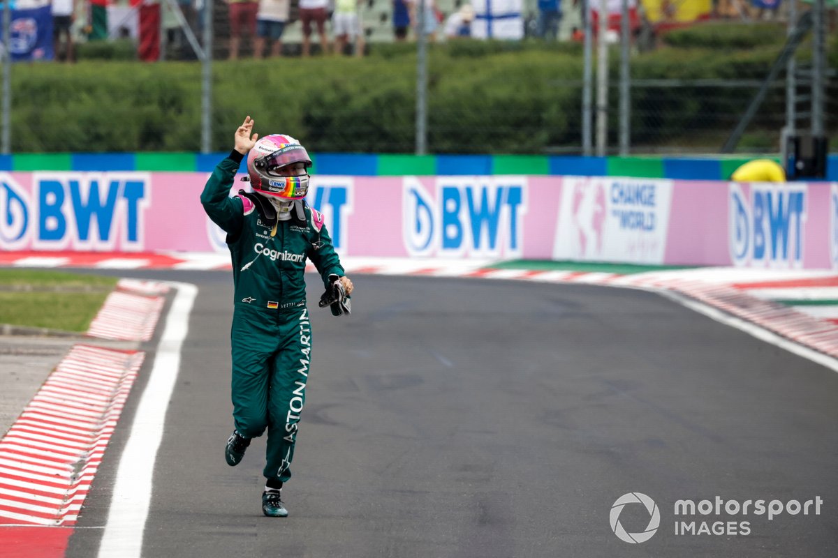 Четыре гонщика не сделали это к моменту начала исполнения гимна. Особое внимание при этом привлек Феттель, на котором была нестандартная футболка с радужными цветами и слоганом «Любовь всегда одна и та же» - таким образом пилот в очередной раз выразил свое отношение к венгерскому закону о т.н. ЛГБТ-пропаганде, который сейчас активно обсуждается (и часто осуждается) в европейских странах.