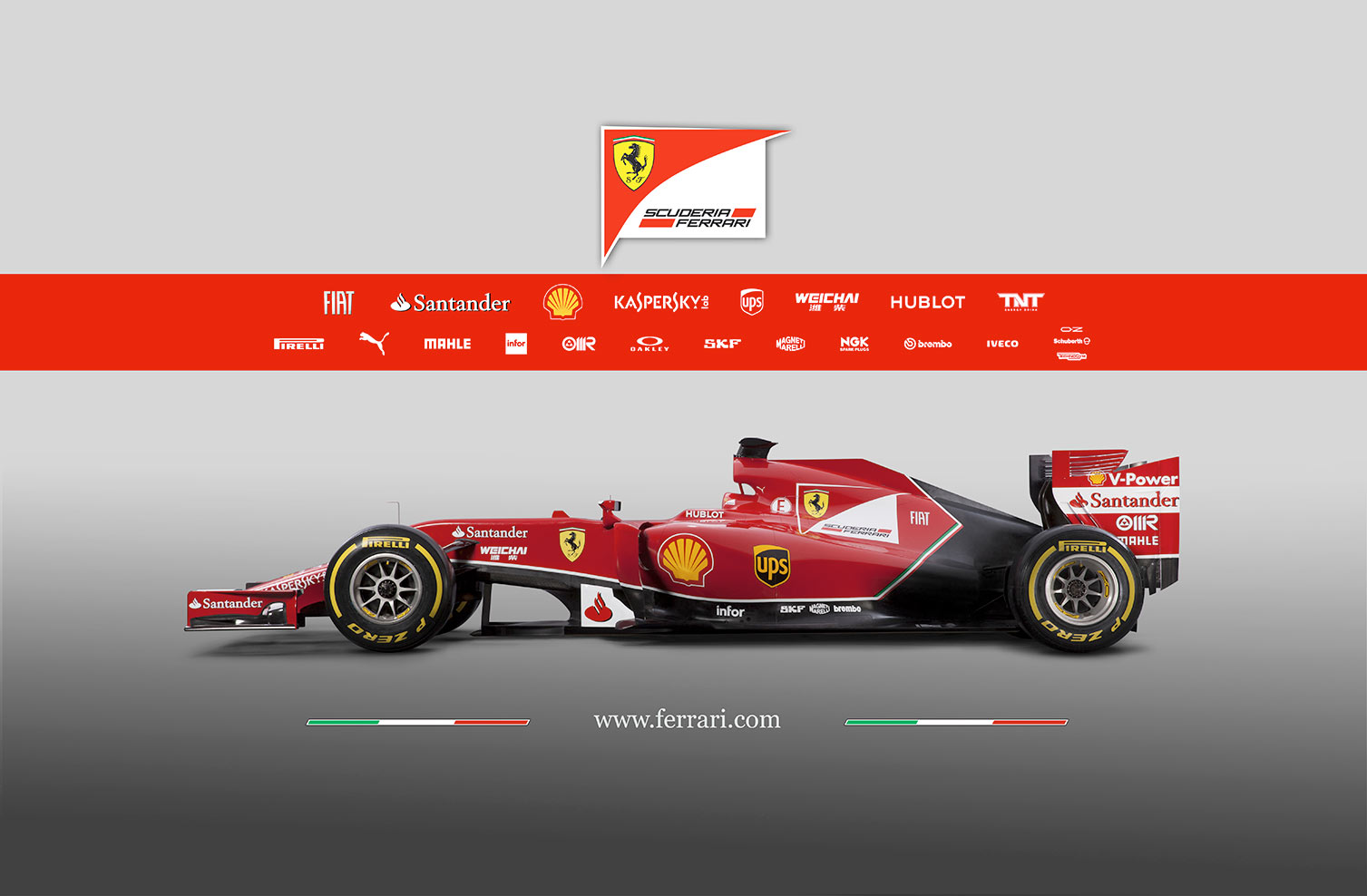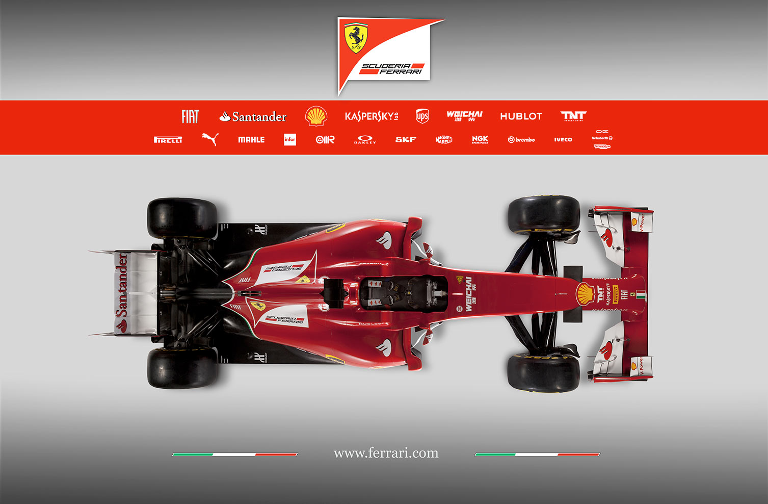 Болид Ferrari F14 T с гонщиками команды (2014 год)