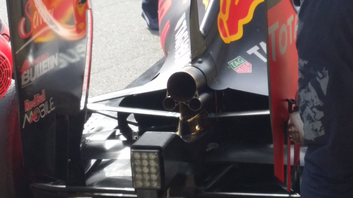 Выхлоп «Ред Булл» также несёт в себе две разделённые трубы.