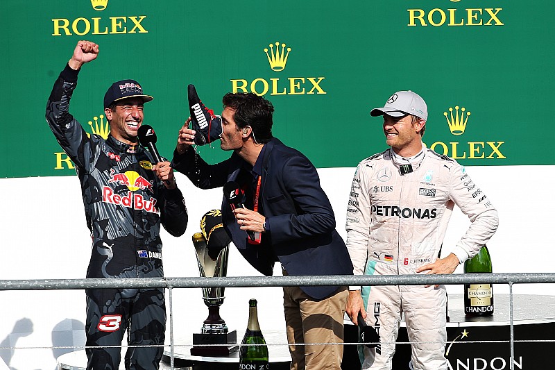 Попав на подиум в Хоккенхайме, Даниэль Риккардо прямо на подиуме снял свой ботинок, налил в него шампанского и выпил. На подиуме в Бельгии пить из ботинка пришлось уже его соотечественнику Марку Уэбберу, которого сам Риккардо сменил в Red Bull Racing.