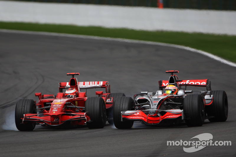 Как начиналось: на последних кругах в Спа пошел дождь, а лидеры гонки Райкконен и Хэмилтон решили не заезжать в боксы за дождевой резиной. На влажной трассе англичанин был быстрее, поравнялся с Кими в повороте Bus Stop, срезал шикану и обогнал его. Нужно было вернуть позицию – но едва выпустив финна вперед на прямой, Льюис тут же снова бросился в атаку и вновь опередил его. Чуть позже Хэмилтон уткнулся в ошибившегося кругового, и Райкконен снова стал лидером, но буквально через несколько секунд его развернуло, а затем Кими и вовсе врезался в отбойник. Льюис выиграл, вторым стал Фелипе Масса, а замкнул тройку Ник Хайдфельд, отыгравший на последнем круге какое-то нереальное количество позиций за счет дождевых шин.